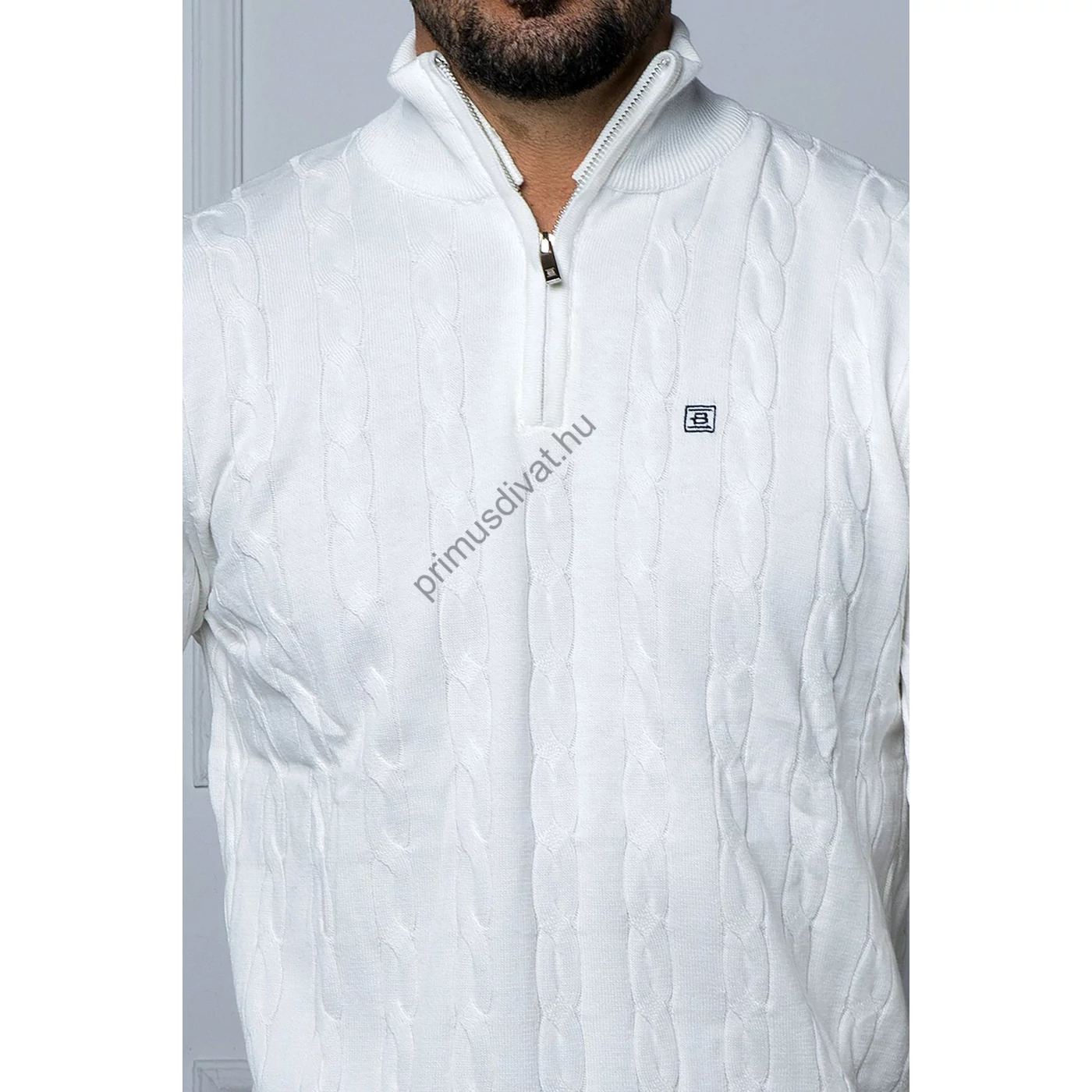 Balance cipzáras nyakú, állógalléros, fonott mintás kötött törtfehér Fonner pulóver - Blnc2557kn-2