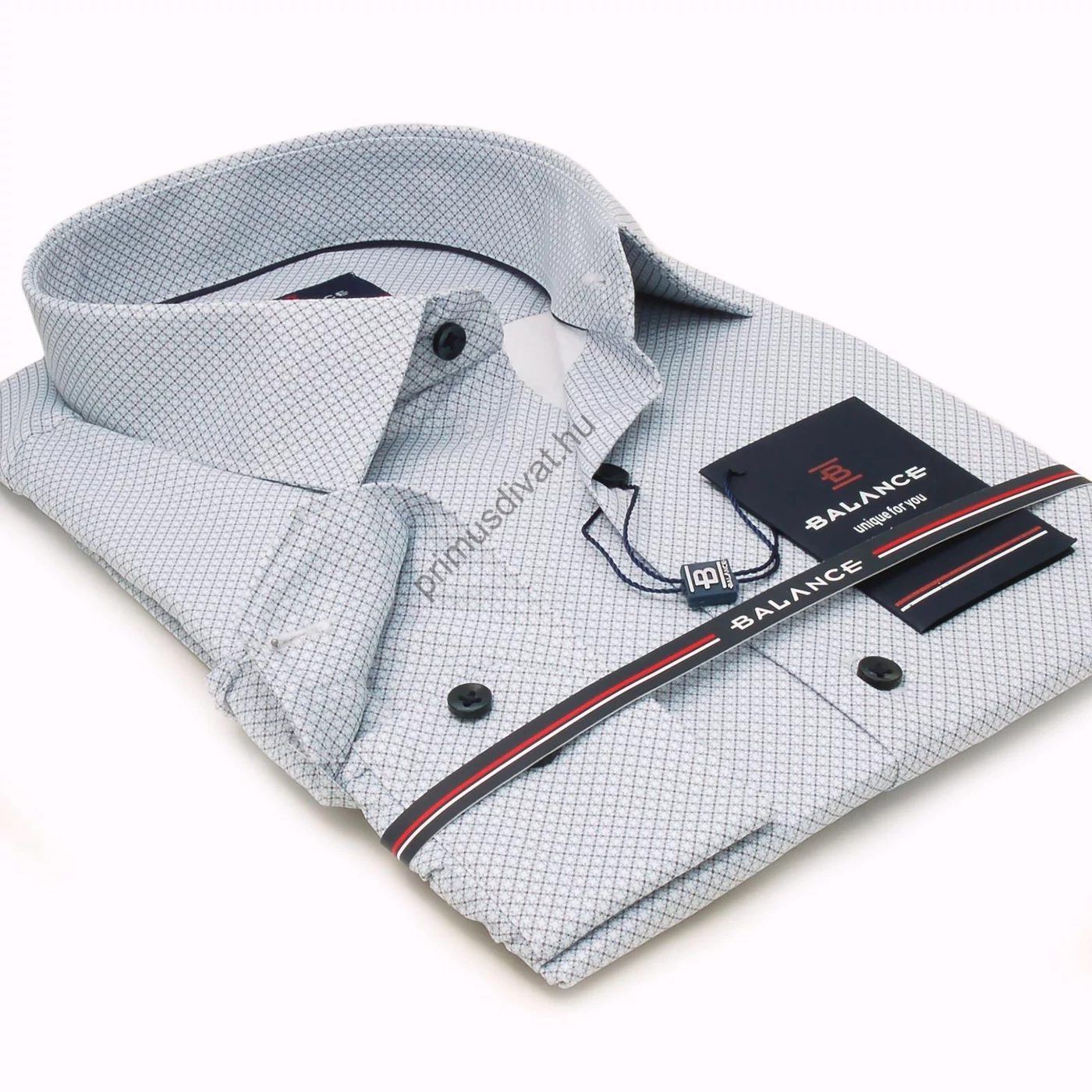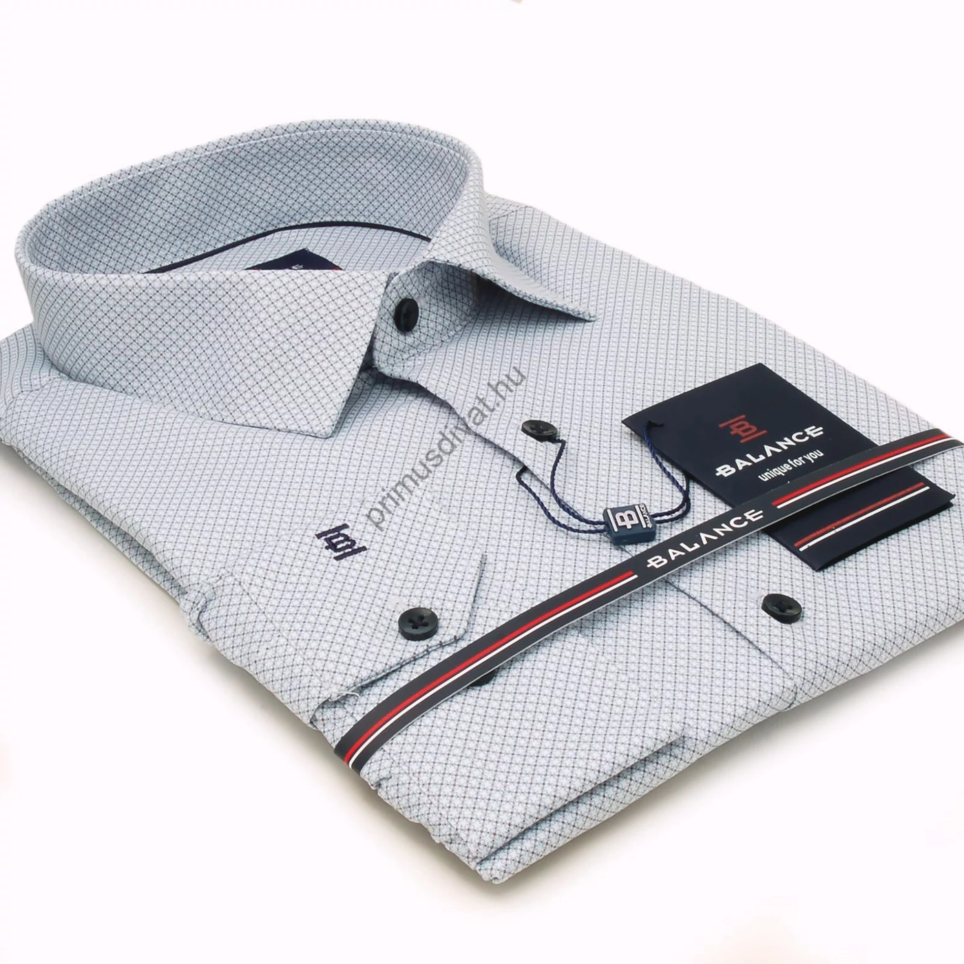 Balance fehér alapon nyomott kékesszürke apró mintás, hosszú ujjú rugalmas, hagyományos szabásvonalú Grid regular-fit ing, mandzsettáján kis Balance monogram hímzéssel. Vasaláskönnyített anyag.