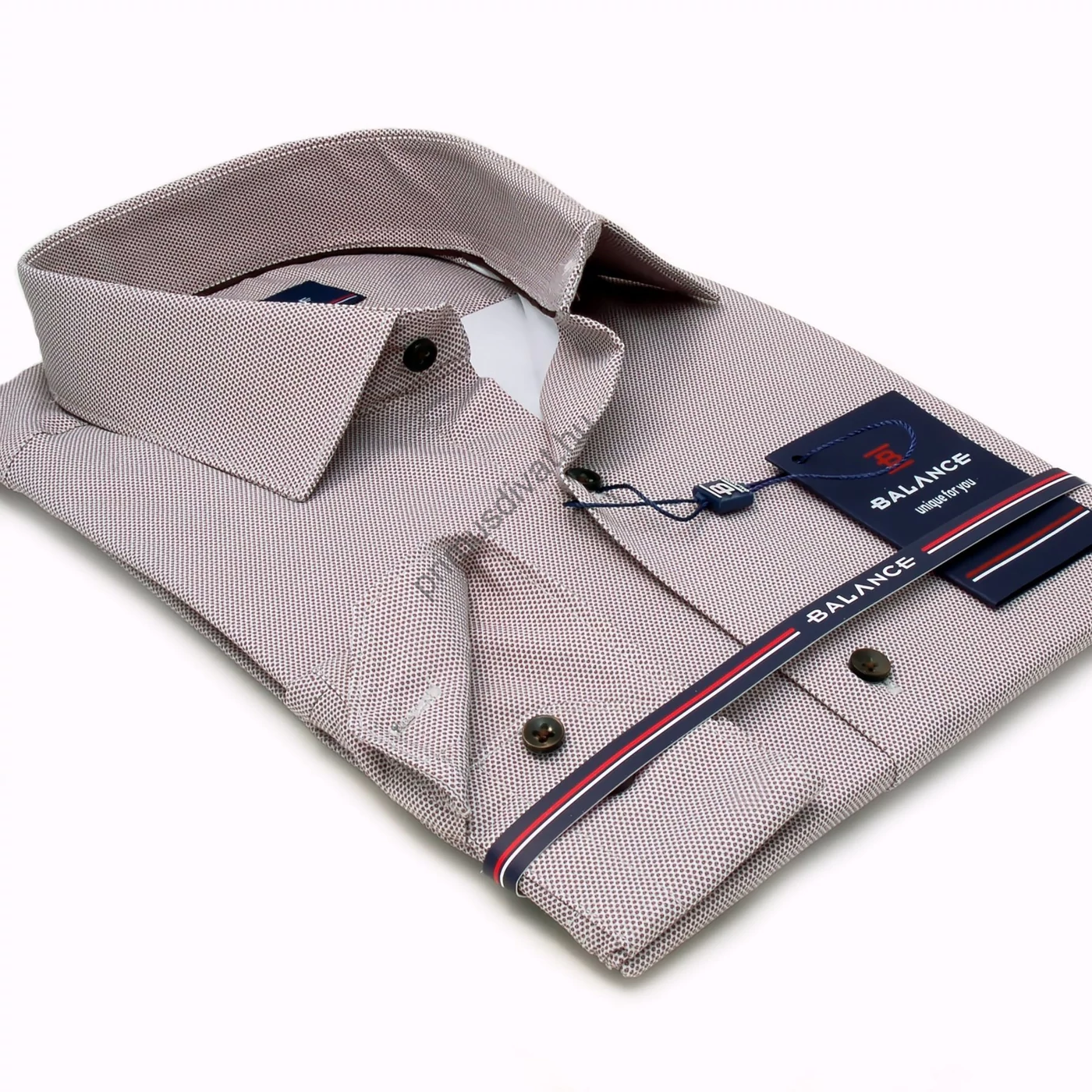 Balance fehér alapon nyomott sötétbarna apró pöttymintás hosszú ujjú, rugalmas anyagú, hagyományos szabásvonalú Kaos regular-fit ing, mandzsettáján kis Balance monogram hímzéssel. Vasaláskönnyített prémium pamut anyag.