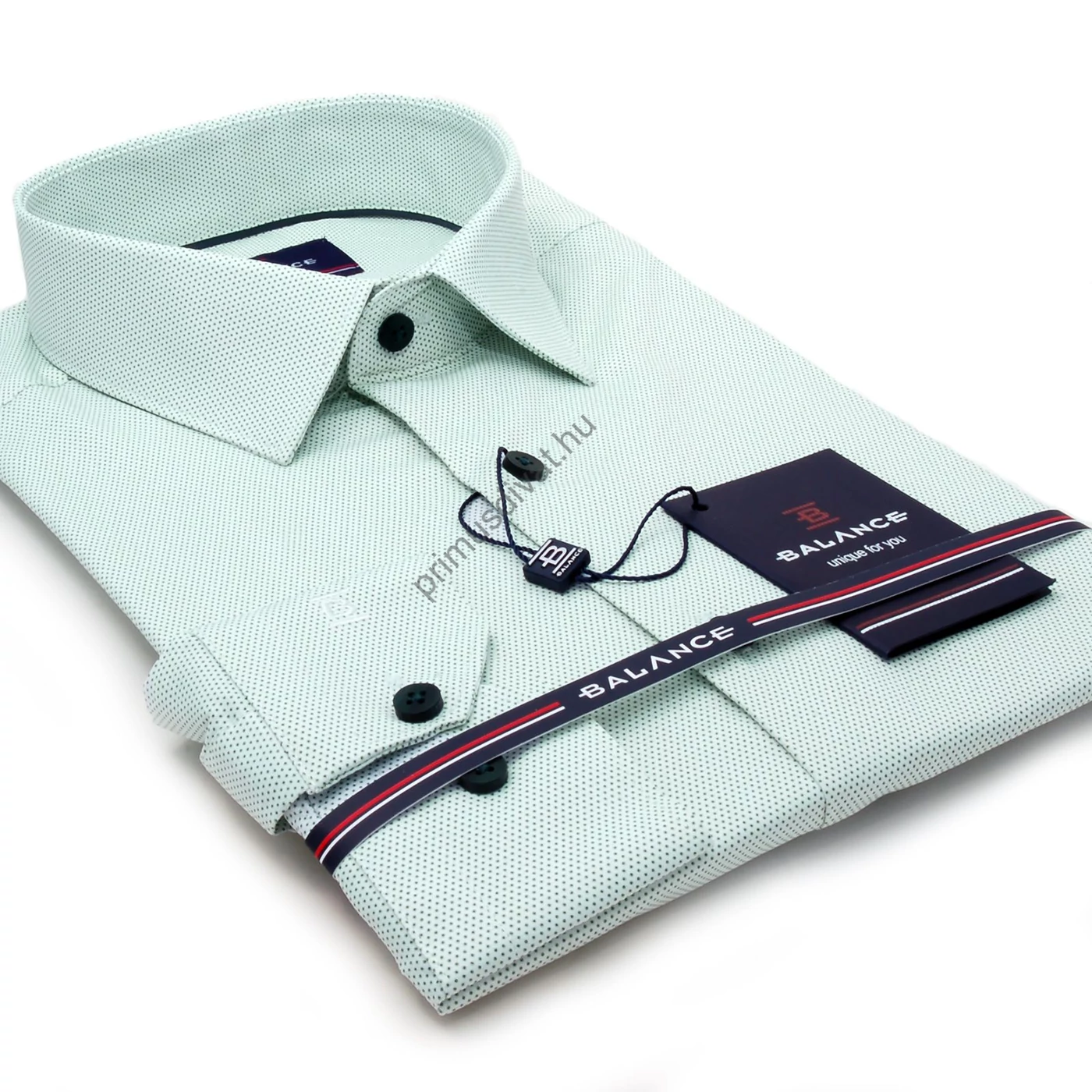 Balance fehér alapon nyomott zöld apró pöttymintás hosszú ujjú, karcsúsított fazonú, rugalmas anyagú Dotted slim-fit ing, selymes tapintású, vasaláskönnyített prémium pamut anyagból. Jobb mandzsettáján Balance monogram hímzés található. Digitális print-eléssel készült, amely jobb minőséget tud produkálni, mint a hagyományos nyomással készült alapanyag.