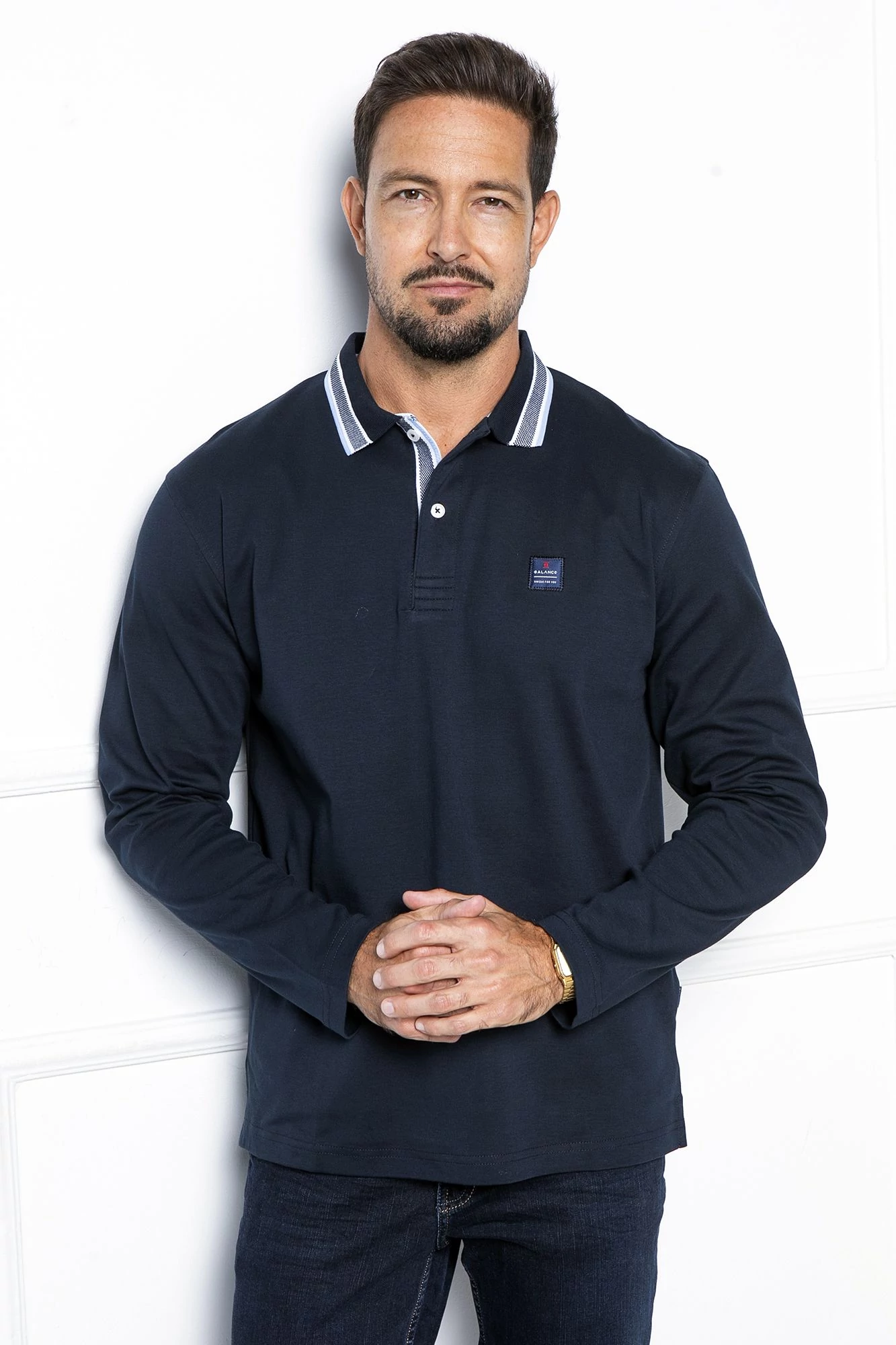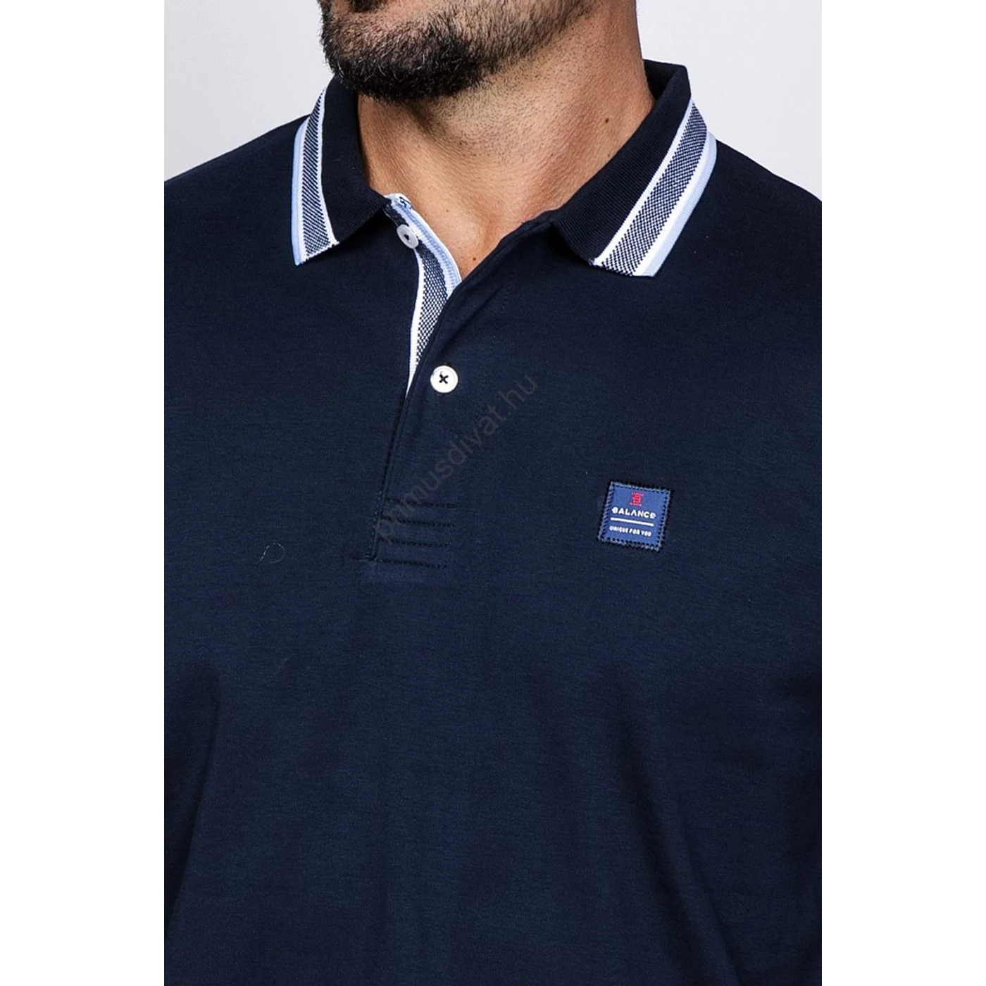 Balance galléros-gombos nyakú sötétkék puha pamut anyagú hosszú ujjú Craig ingpóló, pulóver - Blnc2552sw-1