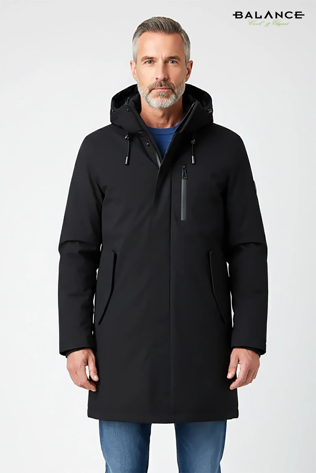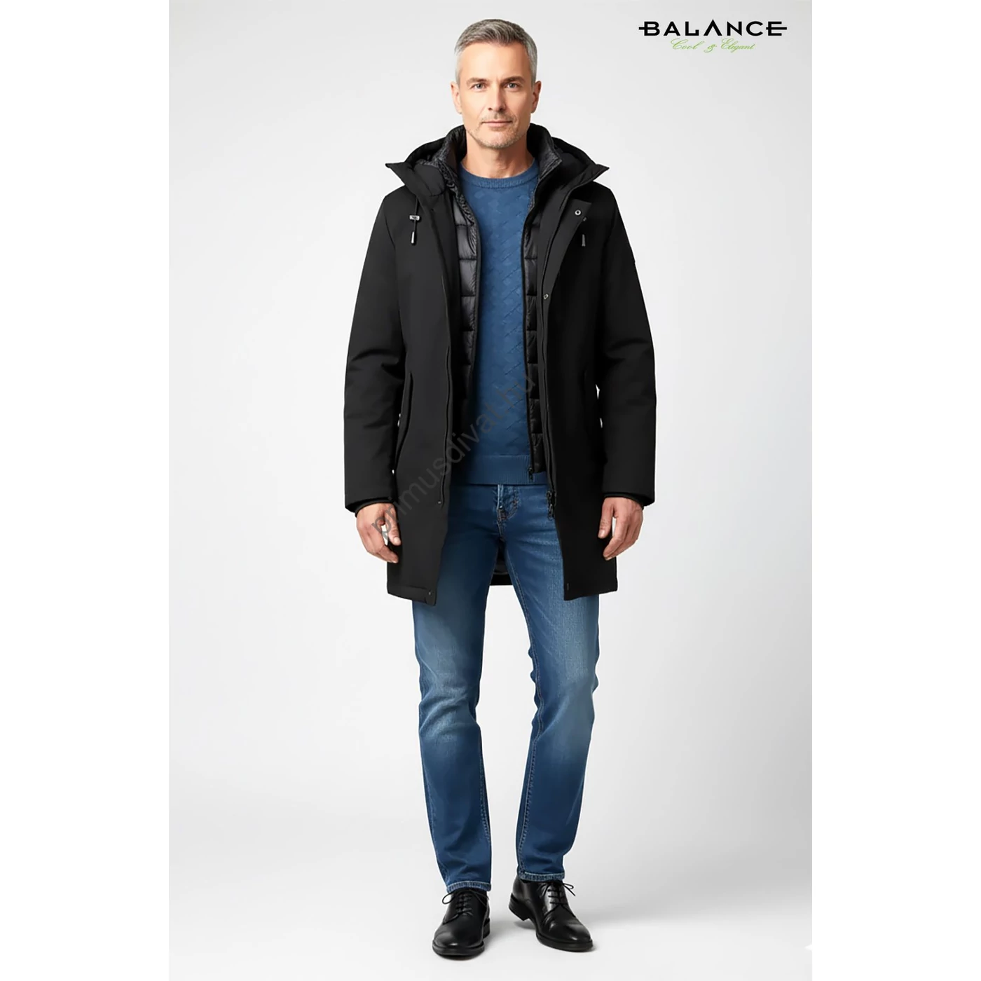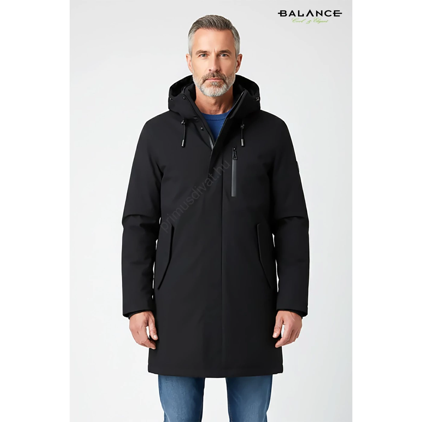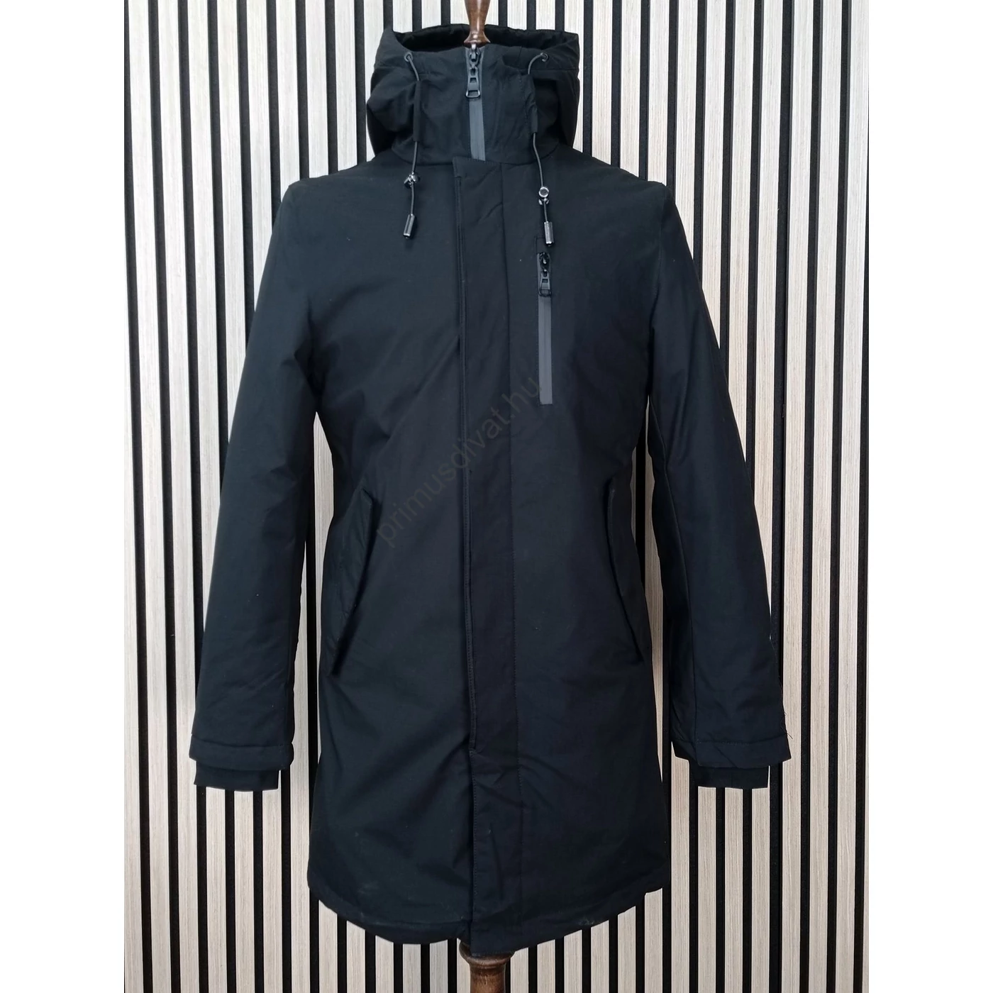 Balance kicipzározható orkános garbós betétes, kapucnis fekete Longer dzseki, télikabát, vízlepergetős anyagból. Vatelinnal bélelt, duplakocsis cipzáras kialakítású, kapucnija nem levehető.
