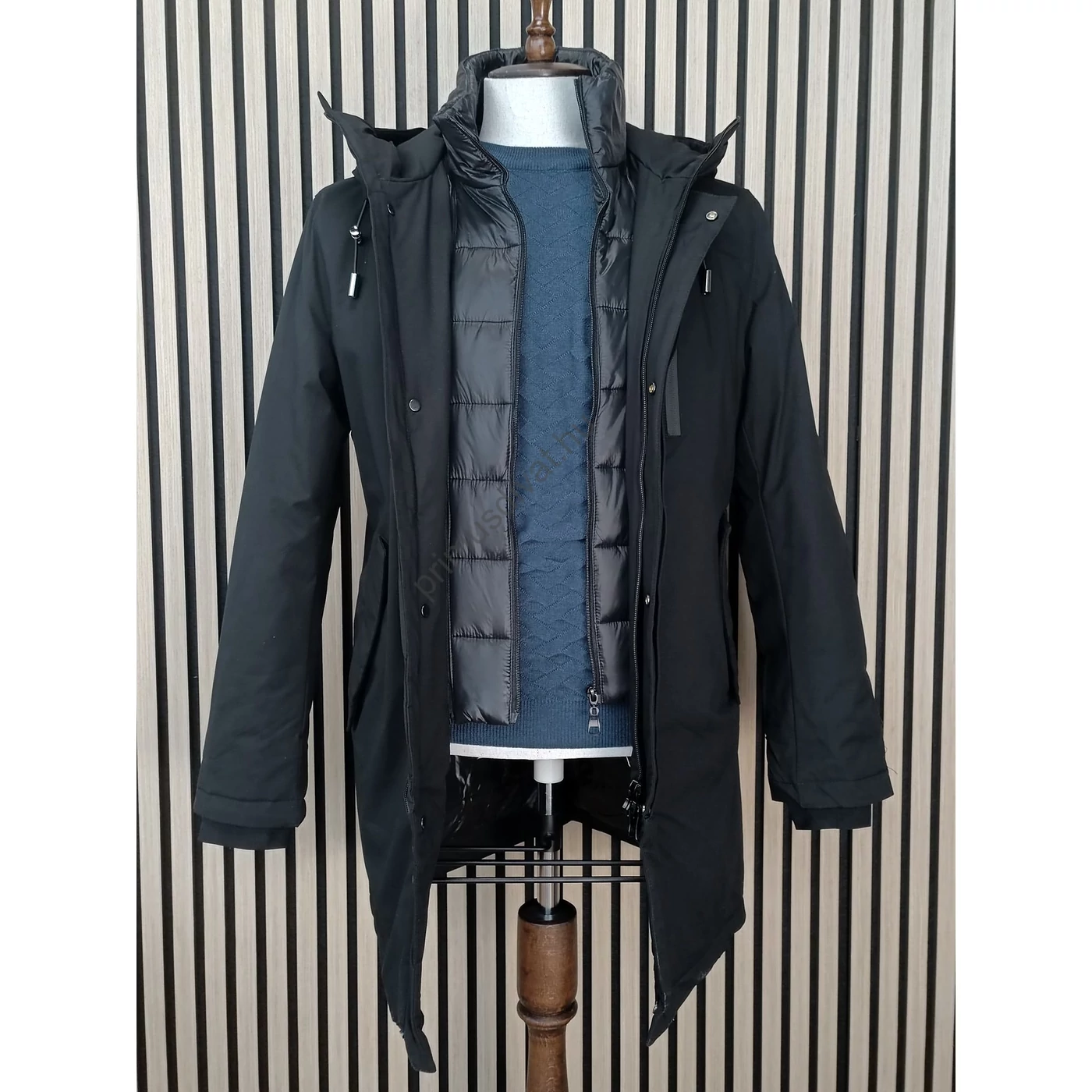 Balance kicipzározható orkános garbós betétes, kapucnis fekete Longer dzseki, télikabát, vízlepergetős anyagból - Blnc2554ja-1