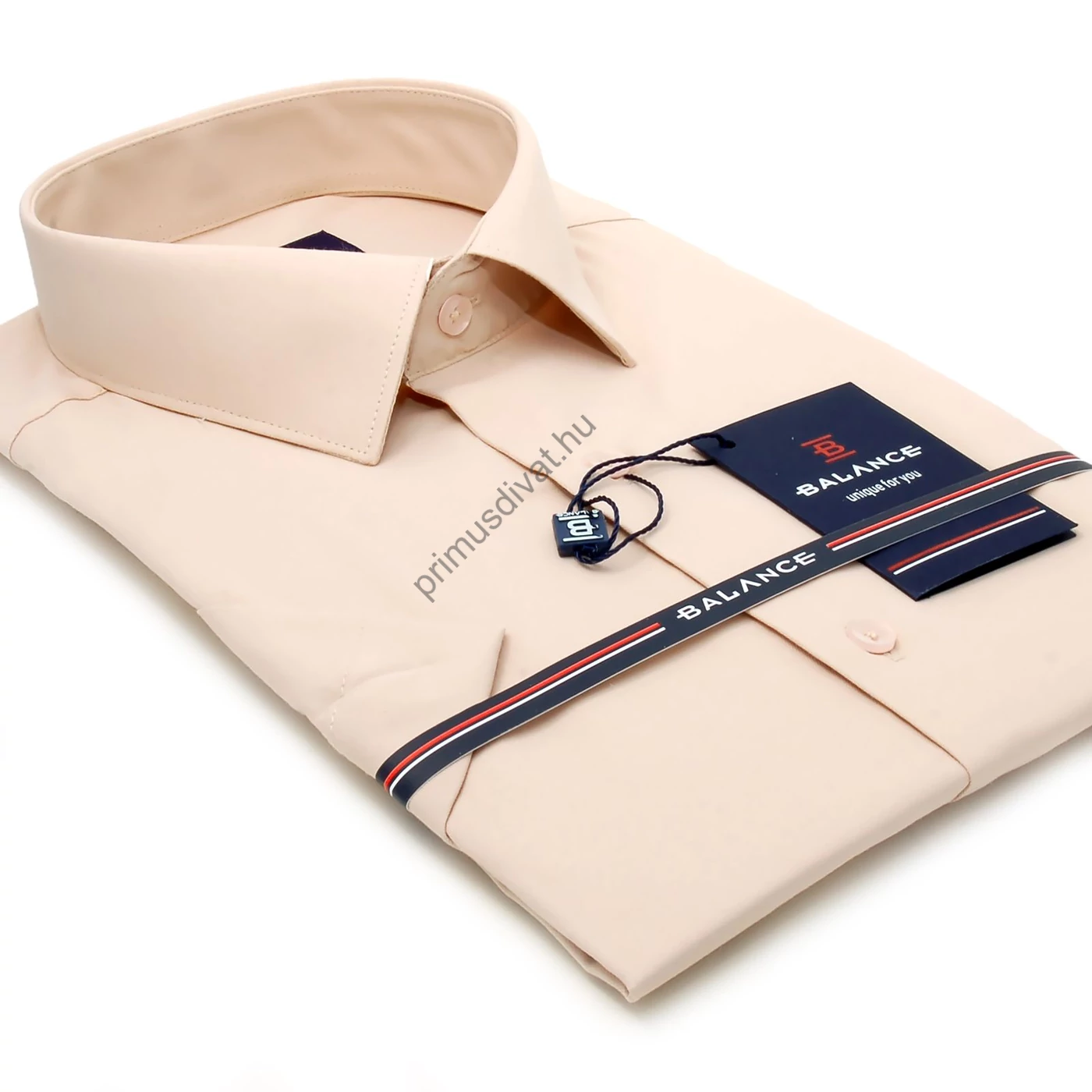 Balance normál galléros drapp rugalmas pamutszatén, enyhen karcsúsított slim-fit rövid ujjú alkalmi ing - Blnc2521she-4