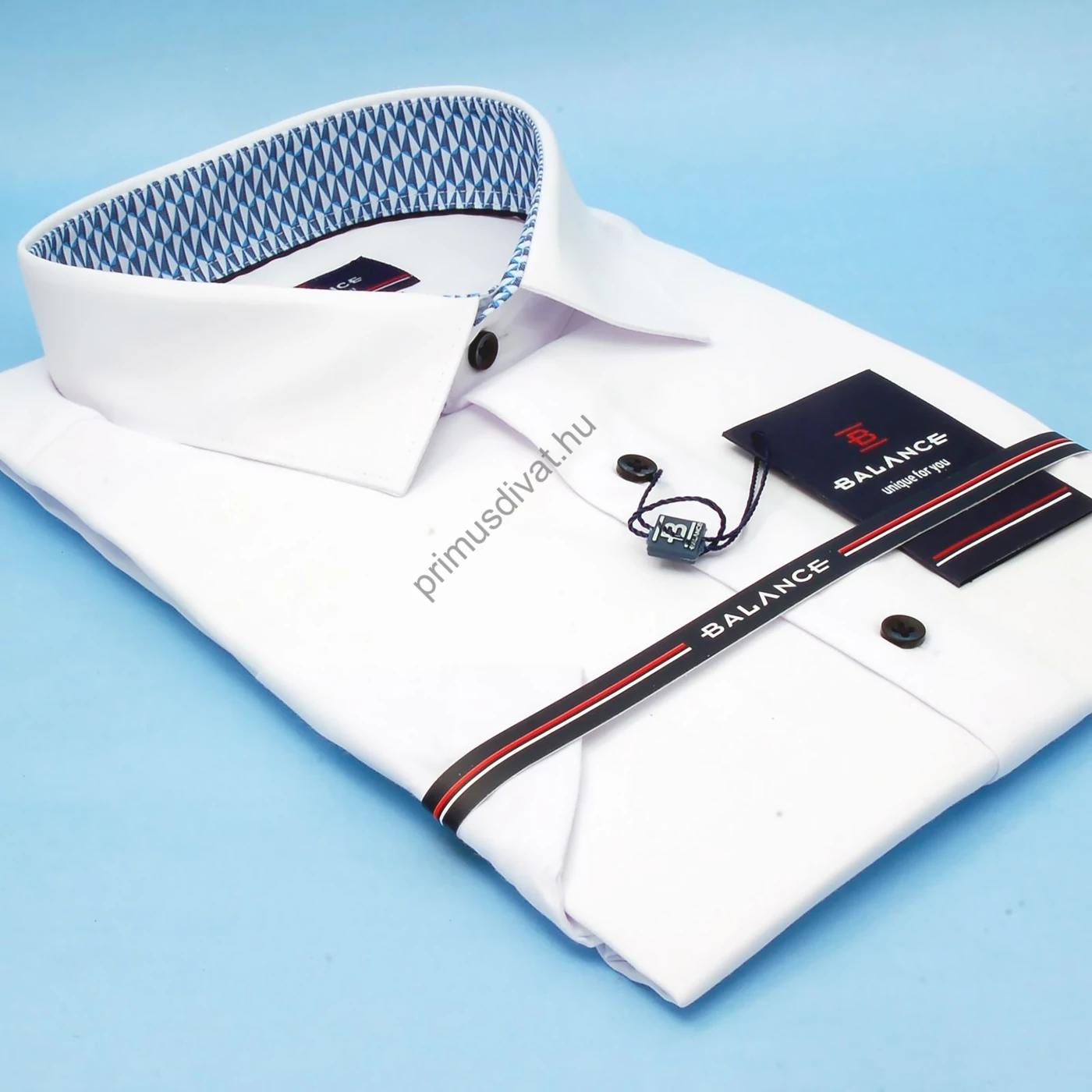 Balance normál galléros, fehér rugalmas pamutszatén, karcsúsított slim-fit rövid ujjú alkalmi Lois ing, nyaka belső oldalán kontrasztos mintás betéttel. Vasaláskönnyített anyagú.