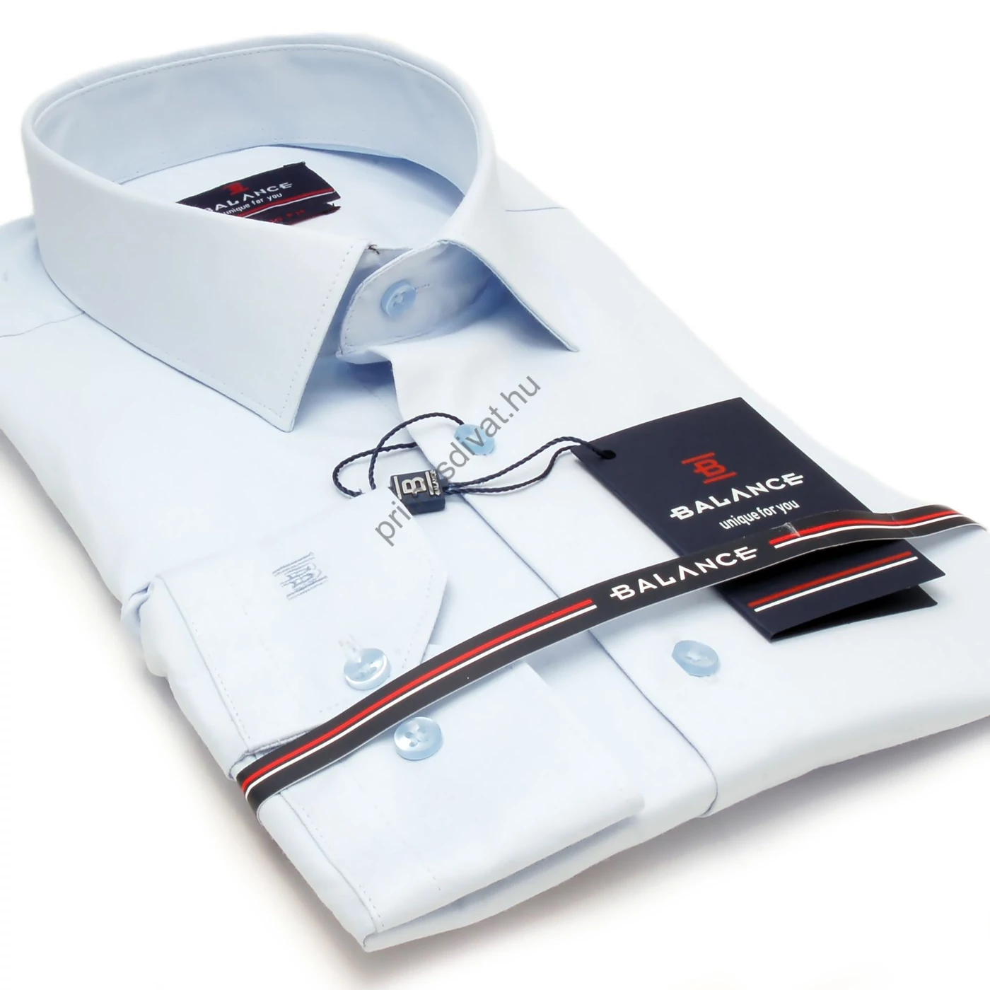 Balance normál galléros, vízkék rugalmas pamutszatén, slim-fit hosszú ujjú alkalmi ing - Blnc2407she-2