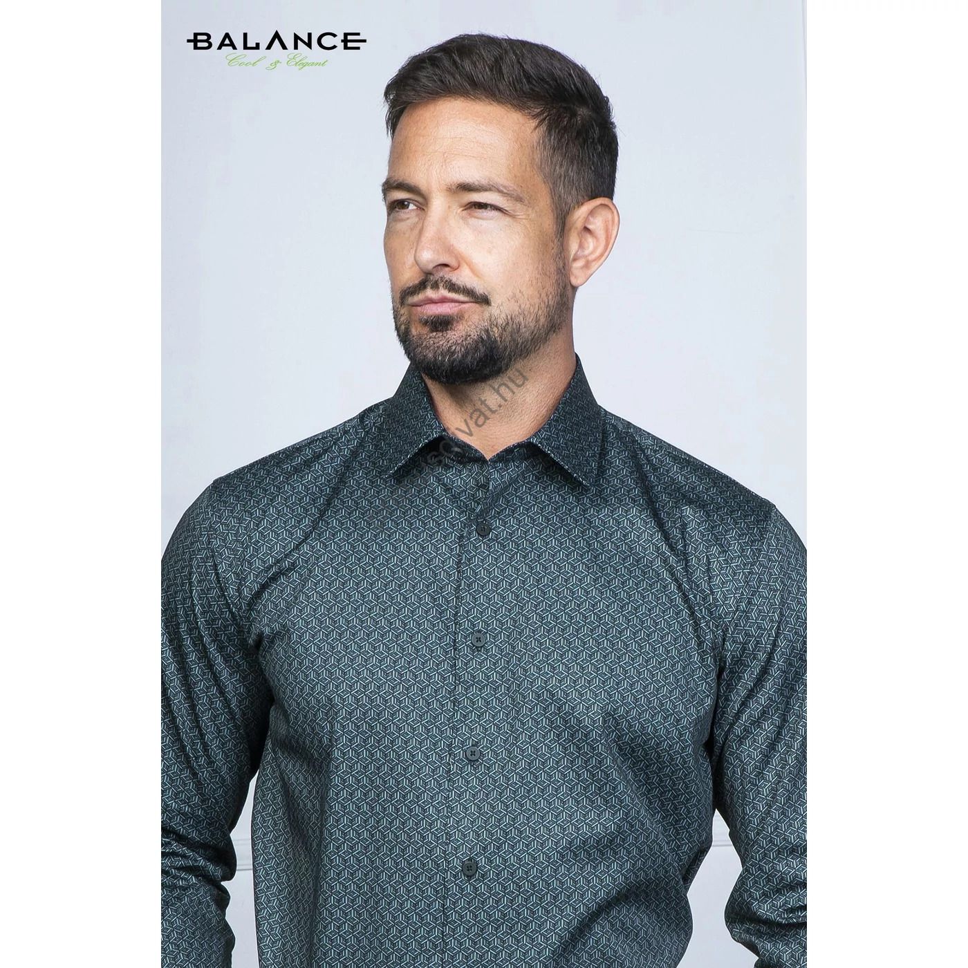 Balance nyomott zöldesbe hajló szürke színű, sűrűn mintázott hosszú ujjú karcsúsított Frein slim-fit ing, selymes tapintású, vasaláskönnyített prémium pamut anyagból. Jobb mandzsettáján Balance monogram hímzés található.