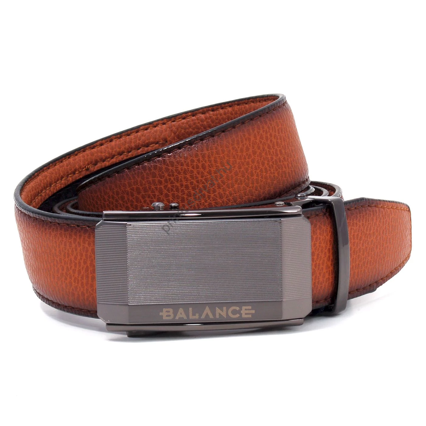 Balance racsnis záródású, varrott camel-barna bőrszíjas, antikolt hatású gravírozott, bordázott fém csatos öv - Blnc2100belt-2