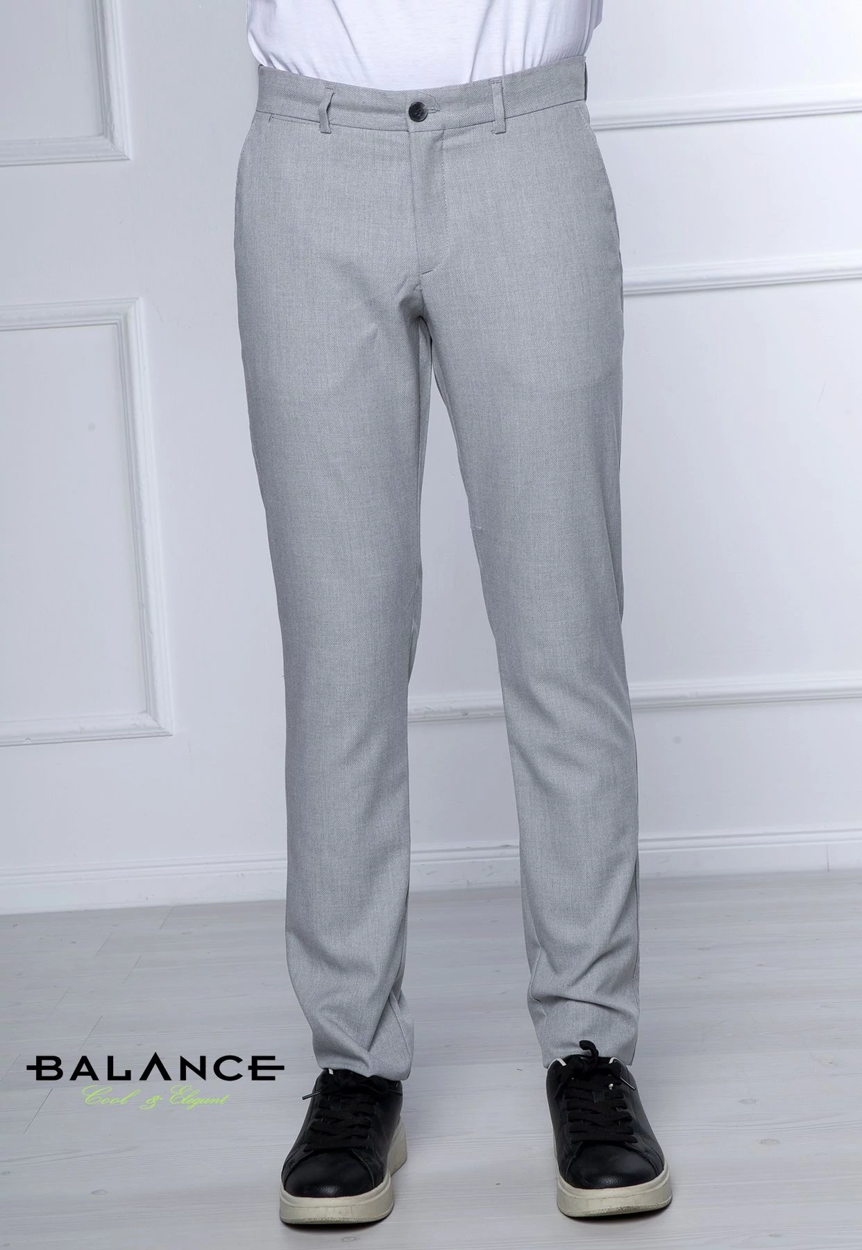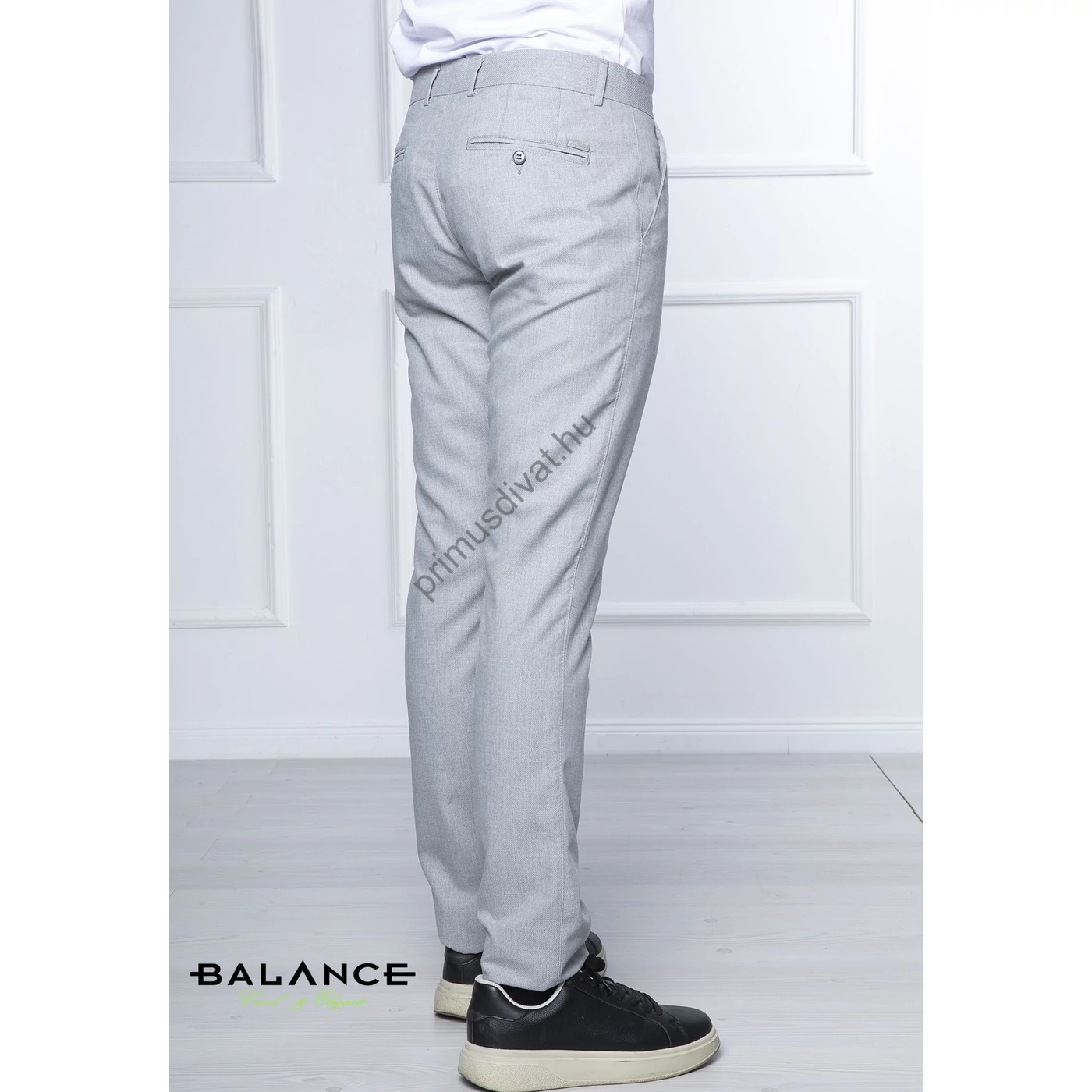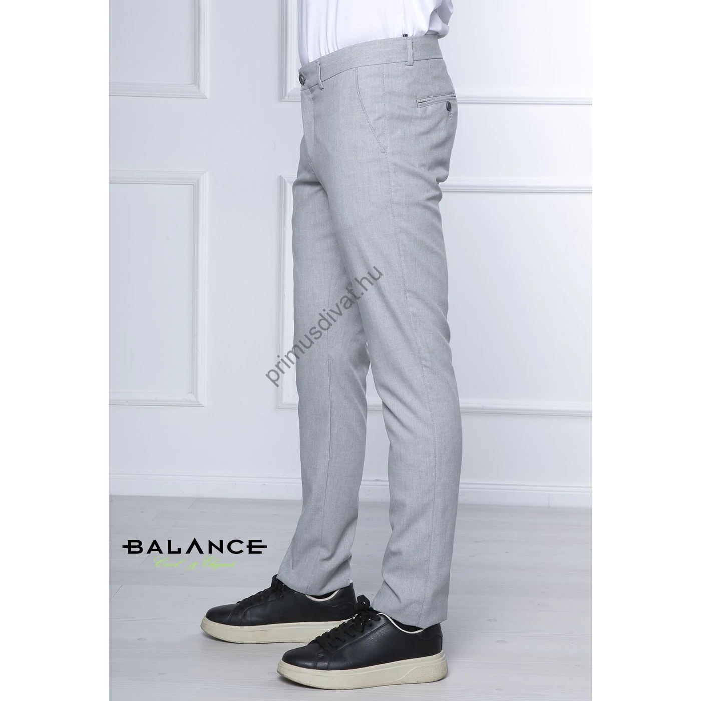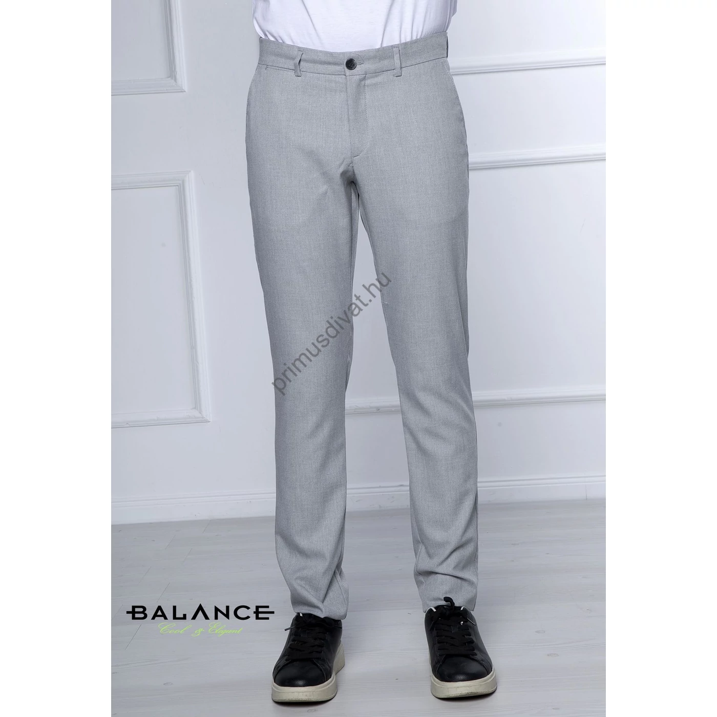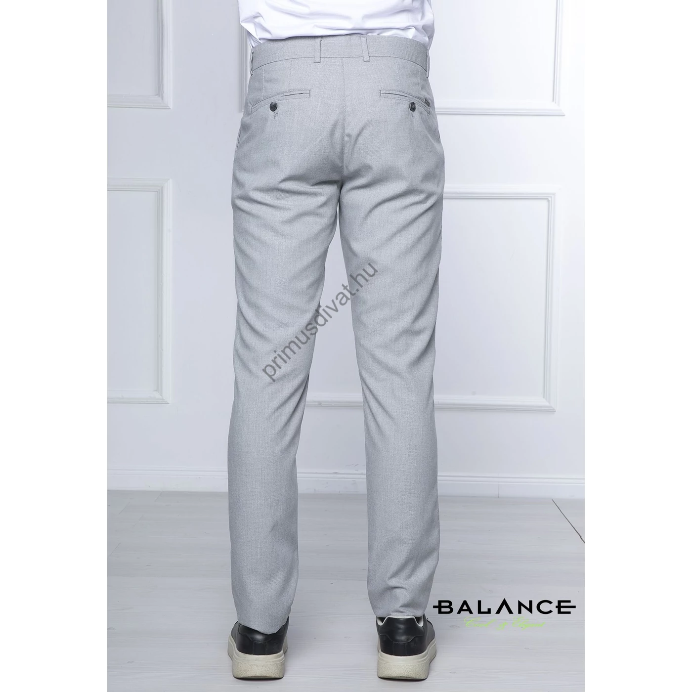 Balance szürke strukturált felületű rugalmas vékony szövet anyagú, svédzsebes Werum nadrág. Rugalmas anyagból készült slim-fit fazonban, kényelmes viselet. Oldalt svéd-, hátul két paszpólos zsebbel. Hátsó zseb felett szolid fém Balance logó található.
