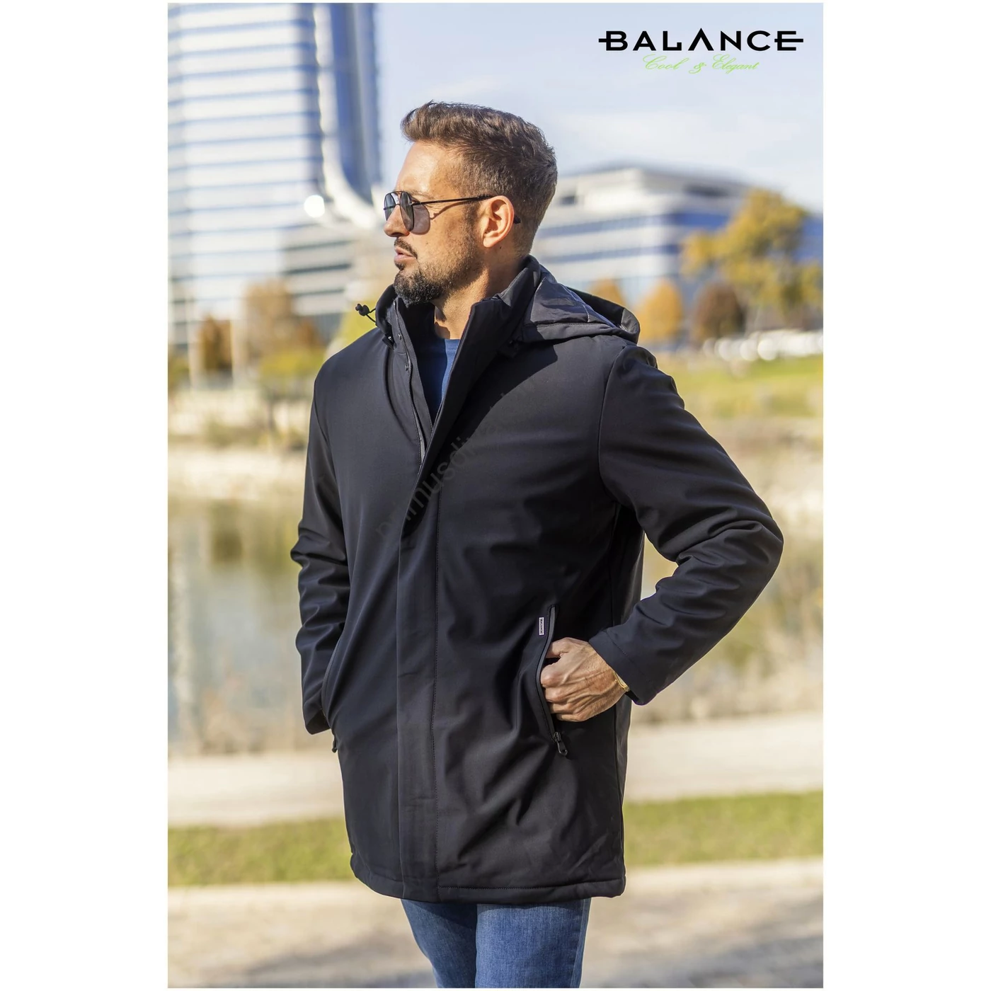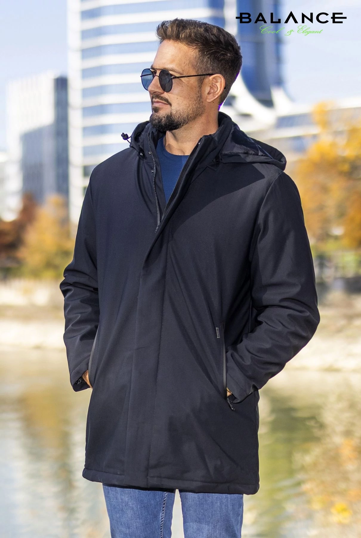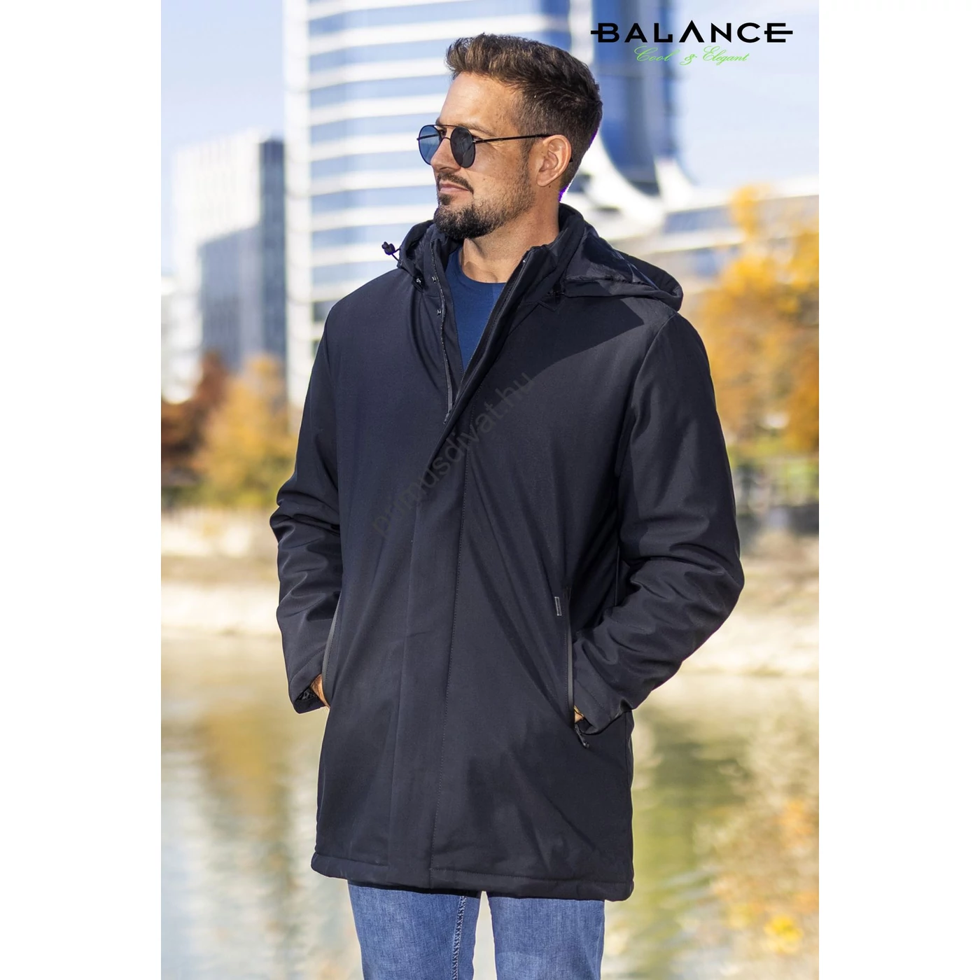 Balance vízlepergetős anyagú, levehető kapucnis, hosszabb, elegánsabb szabásvonalú sötétkék Wint dzseki, télikabát - Blnc2453ja-1